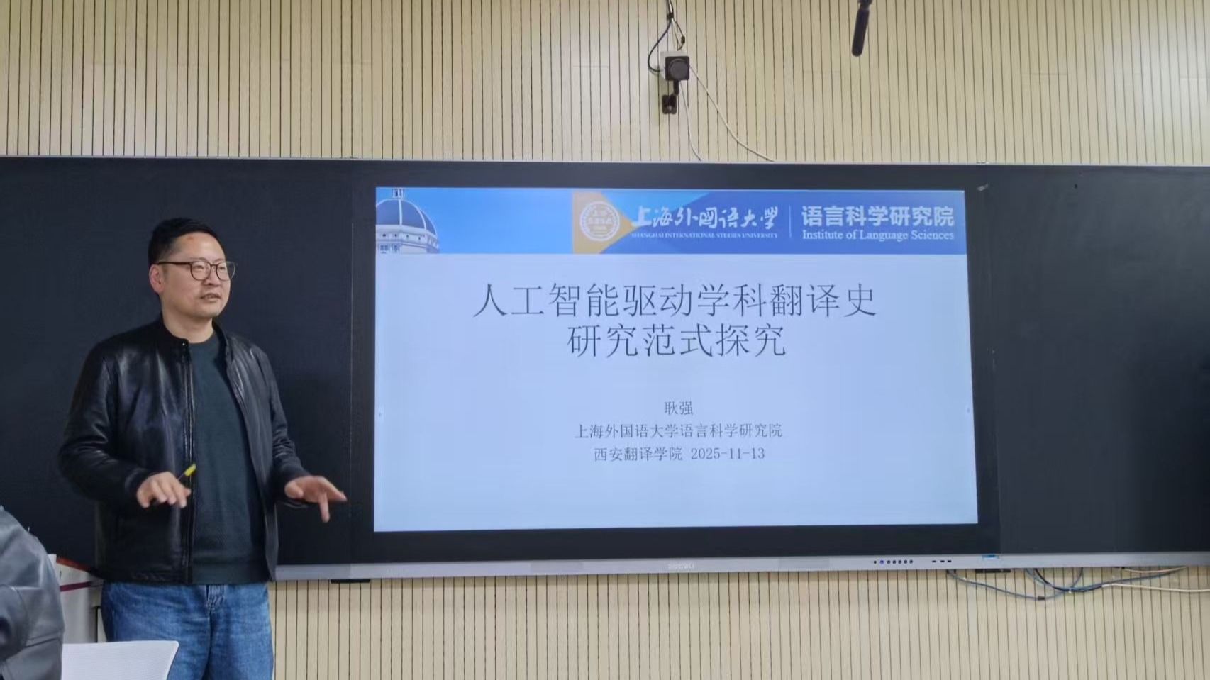 On the afternoon of November 13, 2025, the 77th session of the “Zhongnan Cultural Translation Forum” was successfully held in Classroom 2401, Building 2, West Campus. The lecture featured Professor Geng Qiang, a dedicated researcher at the Institute of Language Sciences of Shanghai International Studies University and a doctoral supervisor, who delivered a thematic report titled “Theories and Methods of AI-Driven Translation History Research”. The event was attended by Professor Yuan Xiaolu, Dean of the School of English Language and Culture, along with Vice Deans Professor Zhang Rui and Professor Li Yan. The lecture was hosted by Vice Dean Professor Zhang Rui.