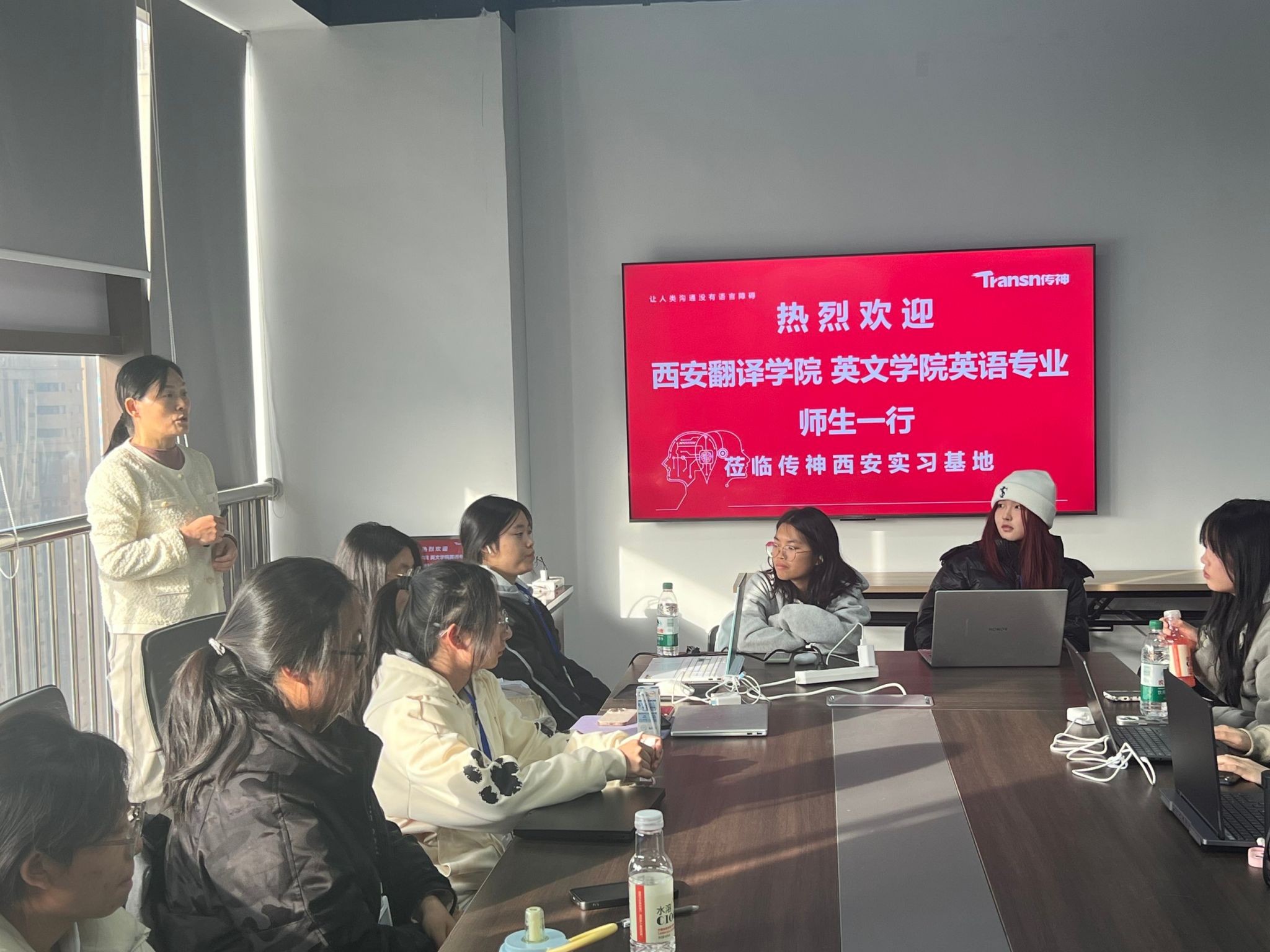 实习当日,一场干货满满的行业讲座拉开了实践序幕。传神公司实习负责老师李卫红以详实的数据、生动的案例,为同学们深度解析了翻译行业的市场规模、竞争格局与技术革新趋势。从传统语言服务到AI驱动的智能解决方案,从行业人才需求标准到未来就业新赛道,李老师的分享层层深入,不仅拓宽了同学们的行业视野,更让大家清晰认识到,掌握智能技术与专业能力的复合型人才,在新时代语言服务领域的核心竞争力。