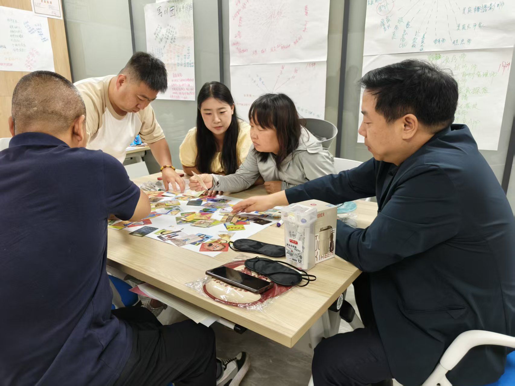 随后,“漫漫人生路”“OH卡牌”“脑洞编剧室:觉察我的感受---自我对话---重新认识自己与团队---寻找我的能量”“感受压力之捉妖记”等游戏依次开展。老师们在游戏中放下心理防备,敞开心扉,纷纷倾诉自己在生活和工作中的压力源。有人坦言工作中KPI带来的巨大压力,担心无法完成任务影响学生就业;有人分享因学生管理难题产生的焦虑,不知如何更好地引导学生成长;还有人倾诉在家庭教育中,因工作繁忙无法陪伴孩子的愧疚与无奈。在真诚的交流中,老师们深刻意识到自己并非独自面对压力,彼此的分享让内心得到慰藉,情绪得到释放。