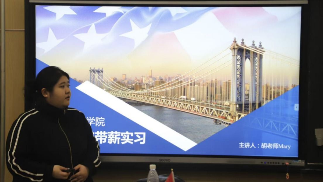 宣讲伊始,胡老师播放了一些赴美实习学生录制的生活与工作视频,通过“看图猜实习地点”等互动小游戏活跃气氛。随后,她系统介绍了项目对参与者的基本要求、可选择的实习岗位与地区,项目带来的多重益处,以及大家普遍关心的费用结构、安全性、实习时间段等问题,尤其重点厘清了前期准备费用与实习期间收入的关系。