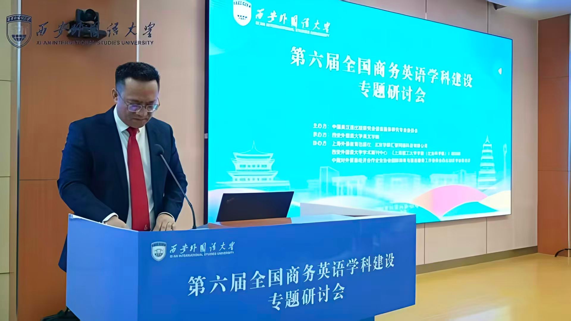 11月15日至16日,第六届全国商务英语学科建设专题研讨会在西安外国语大学长安校区召开,本次会议以“AI背景下商务英语专业教育生存与发展”为核心主题。西安翻译学院名誉校长仲伟合、商务英语一流专业负责人王淙、商务英语系主任张国建应邀参会,与全国学界同仁共探学科建设新方向。