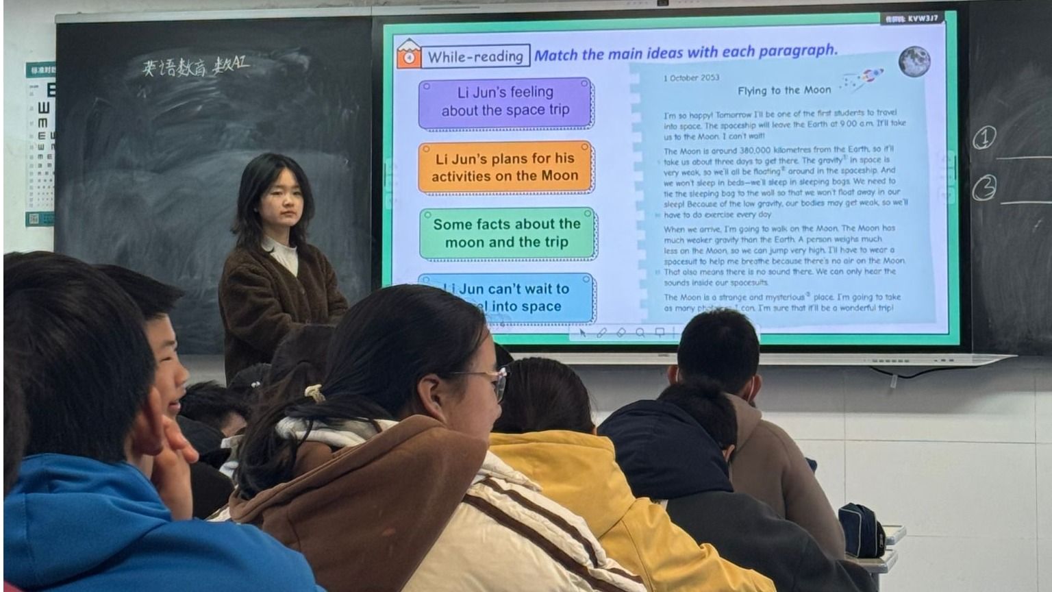 在备课环节,实习生们结合教材内容和学生实际水平认真设计教学方案。例如,在写作课教学中,他们按照“引入—学习思维导图—理解文章结构—仿写—独立写作”的步骤循序渐进,引导学生逐步掌握写作思路与结构。在课堂上,实习生们注重调动学生参与积极性,通过提问、小组活动等方式让更多学生主动投入英语学习。在作业批改中,他们不仅认真标注错误,还针对不同学生特点写下个性化鼓励语,激发学生学习动力,增强学生的学习信心。