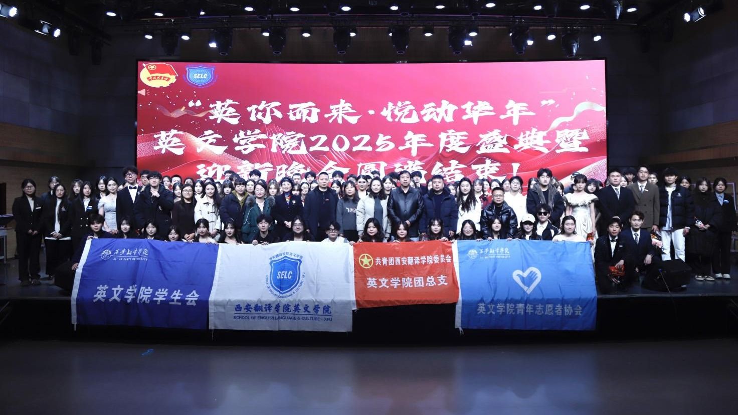 为展现英文学院的独特风采,拉近师生距离、增进彼此理解,我院于2025年12月19日14:30在东区演播大厅举办了“英你而来·悦动华年”2025年度晚会。这场晚会为全院师生带来了一场视听盛宴,大家在欢声笑语与阵阵掌声中,共同回顾学院过去一年取得的亮眼成绩;同时,晚会也饱含着对未来的期许与信心,鼓舞着全院师生在新的一年里携手共进,一同书写英文学院更精彩的新篇章。
